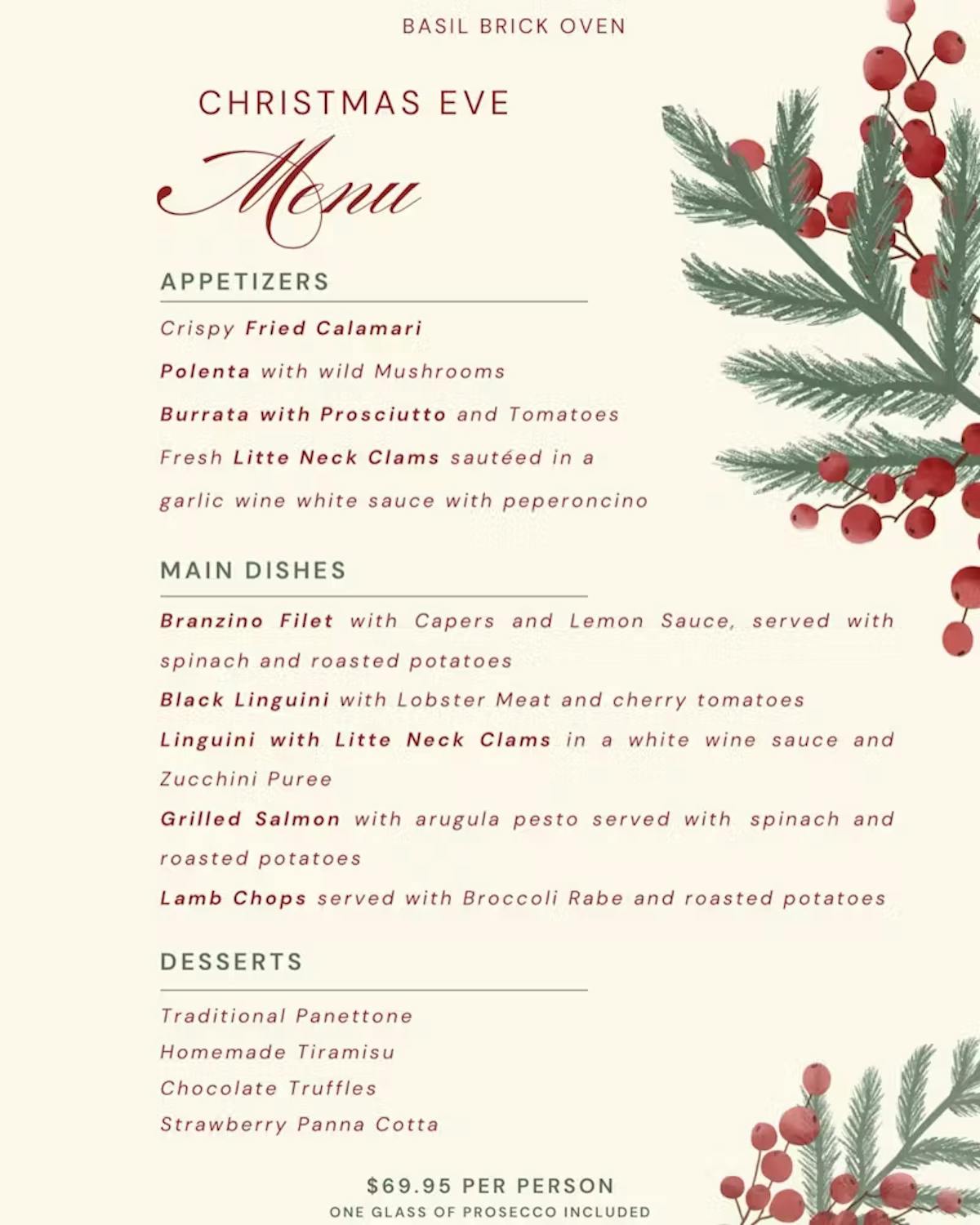 WE ARE OPEN DECEMBER 24TH FROM 4 PM TO 9:30 PM